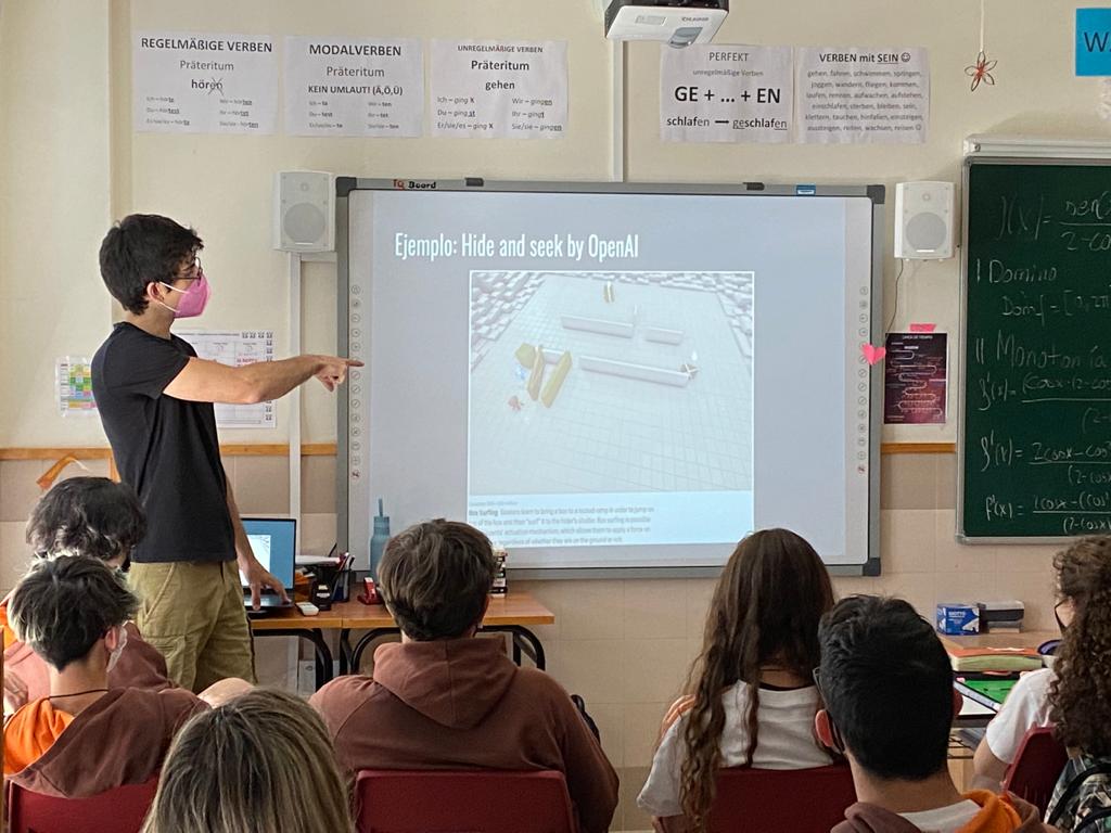 El pasado viernes los alumnos de 4ºESO y 1ºBACH se metieron de lleno en el mundo de la Inteligencia Artificial, con una charla en la que se analizaba el estado de la cuestión, el funcionamiento de las redes neuronales y los retos que la automatización supone para nuestra sociedad.